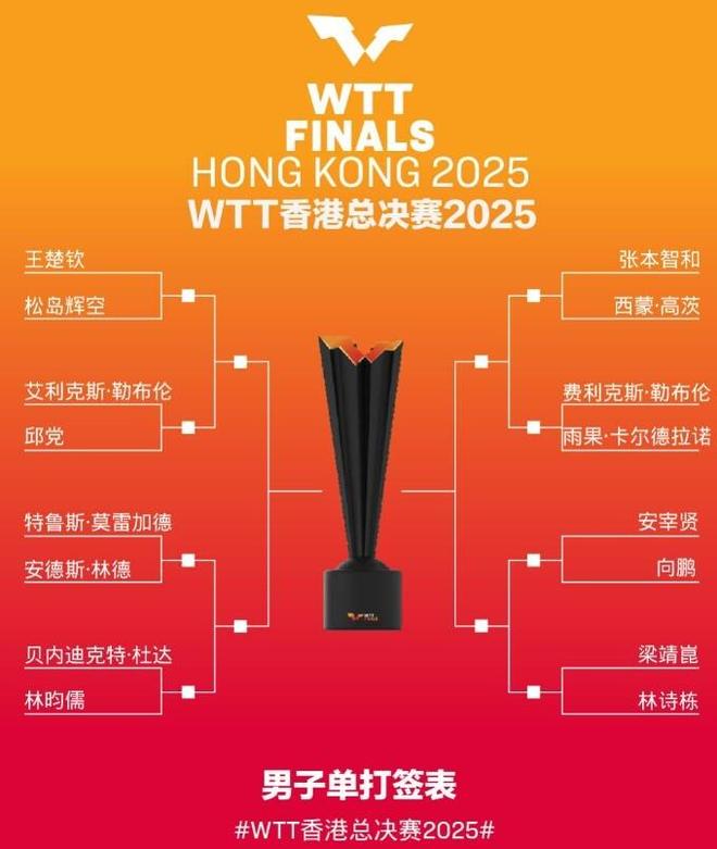 WTT香港区总决赛抽签出炉:王楚钦单卫上半区,